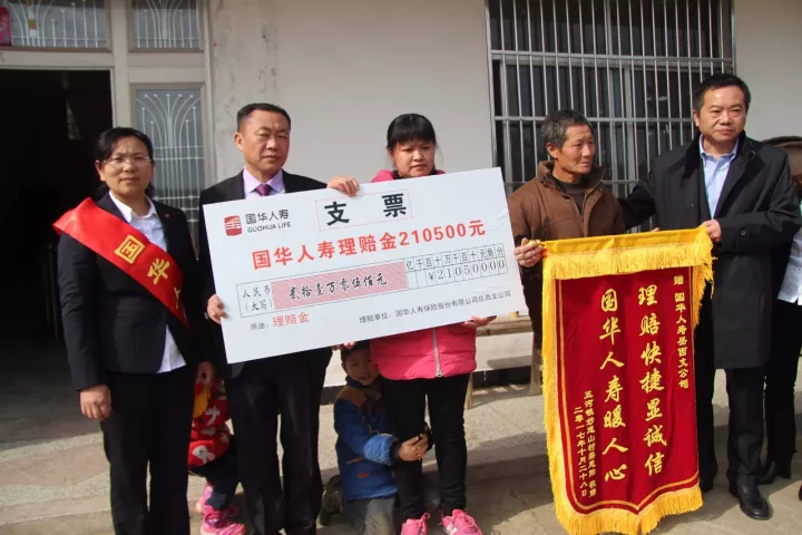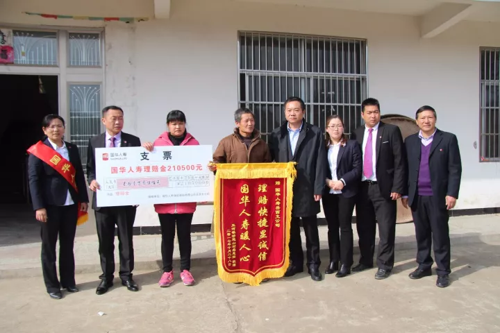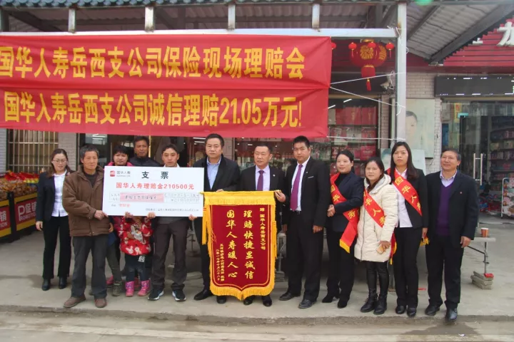 11月28日,國(guó)華人壽岳西支公司在岳西縣五河鎮(zhèn)舉行大型現(xiàn)場(chǎng)理賠會(huì),為客戶崔女士家屬送上了210000元的理賠款。國(guó)華人壽安徽分公司總經(jīng)理徐永奇、安慶中支總經(jīng)理汪和平、岳西支公司經(jīng)理程吉平代表公司參加理賠會(huì)并對(duì)客戶家屬親切慰問(wèn)。收到理賠款的家屬心懷感恩,現(xiàn)場(chǎng)向公司贈(zèng)送了一面寫(xiě)有“理賠快捷顯誠(chéng)信 國(guó)華人壽暖人心”的錦旗,以表達(dá)他們的感激之情。 當(dāng)?shù)卣砗筒糠置襟w參加了此次理賠會(huì)。