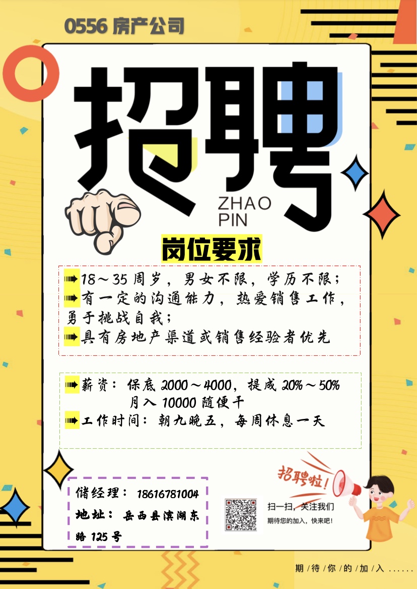 岳西0556房產(chǎn)高薪招聘!